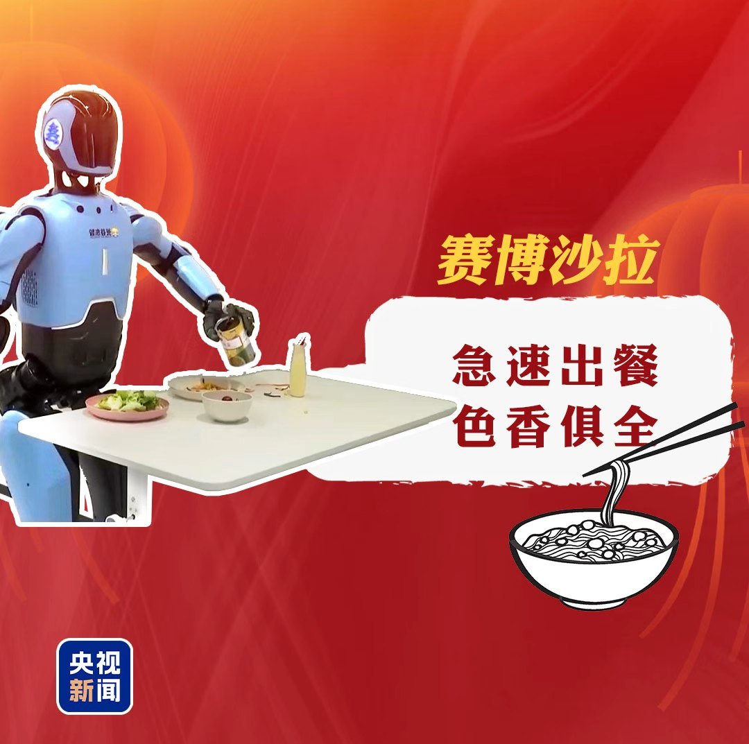 2025年7月,在湖北武汉,东说念主形机器东说念主光子,正在为成为又名“赛博厨师”刻苦考验,它能通过极其轻细且精确的操作,拌出一份可口沙拉。畴昔,它还要挑战更有难度的可口好菜。