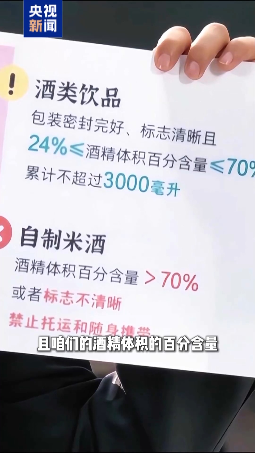 国铁沈阳局长春客运段列车长 刘影:酒能带,可是有几个前提,最初包装要无缺,况兼标记昭彰,乙醇体积的百分含量在24%和70%之间,总佩戴量不要跳跃3000毫升。