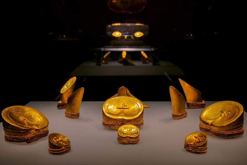 图为南昌汉代海昏侯国业绩博物馆展出的金器。新华社发