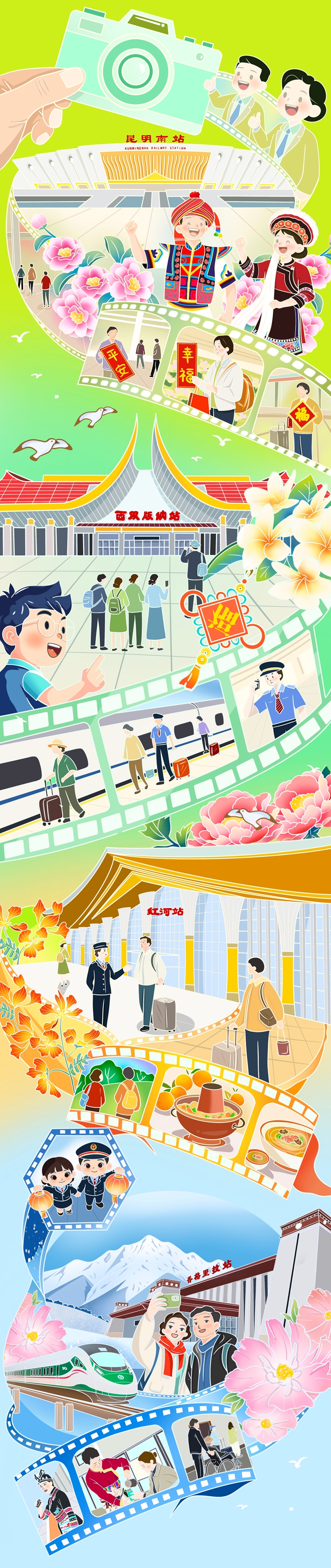 四季流转皆是景,一皆欢歌赴团圆。云南铁路以地舆之好意思、东谈主文之韵、就业之暖,让春运不仅是归家之路,更是碰见云南的好意思好之旅。(笔墨/向攀 漫画/栗也茹 裁剪/杨宇鑫)