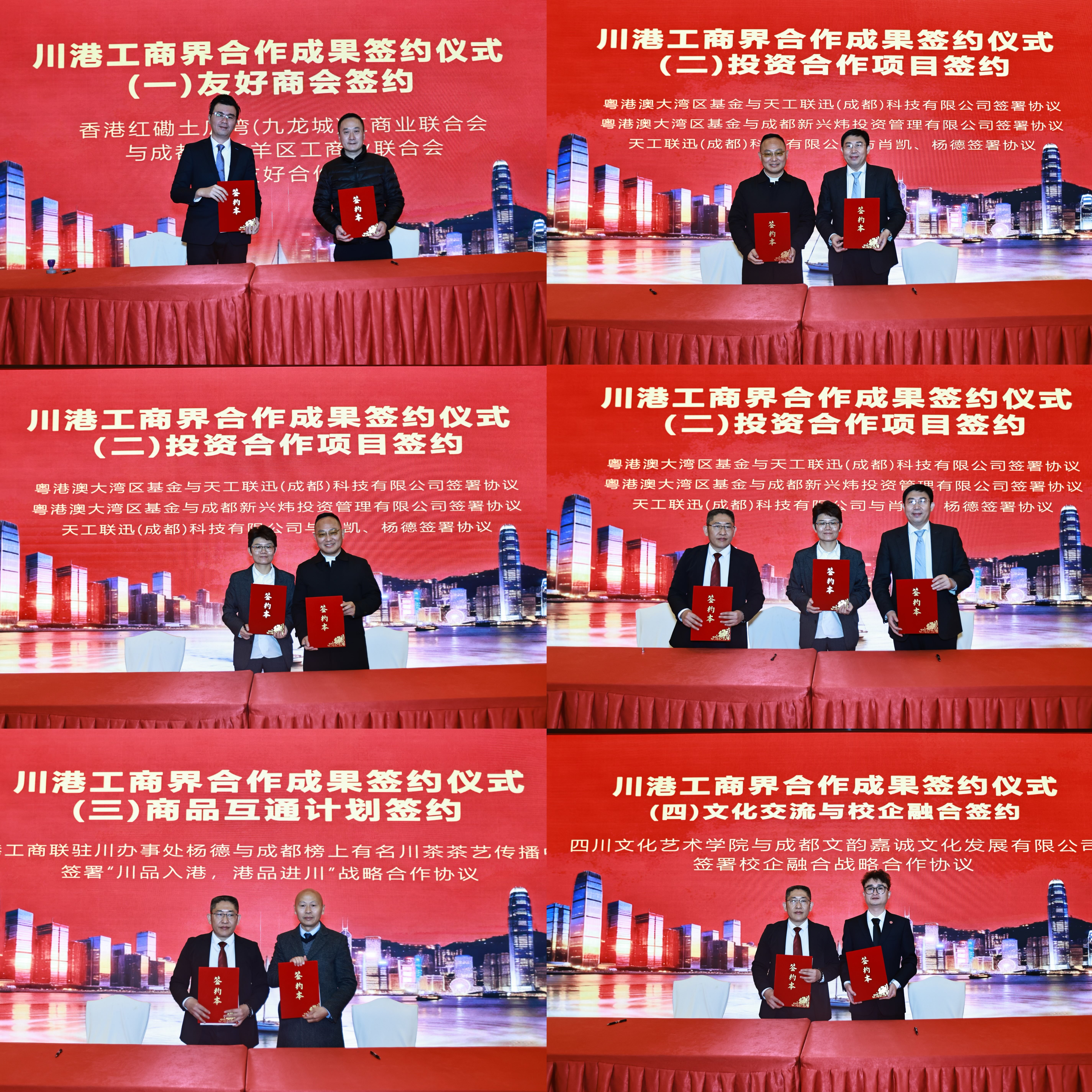 2月13日,川港工商界息争后果签约庆典在成都举行。本次行为由四川省工生意长入会、香港全港各区工商联担任指导单元,香港全港各区工商联/香港红磡土瓜湾(九龙城)工生意长入会驻川做事处和成都文韵嘉诚文化发展有限公司主办,川港两地工商界代表、政府带领、企业嘉宾皆聚一堂,共同见证四项息争公约的致密签署。这次签约涵盖商会联动、科技投资、商品互通、文化校企息争四大领域,标识着川港两地经贸文化息争从意向对接迈入本色性落地阶段,为两地协同发展注入全新动能。